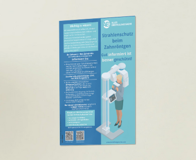 Dieses Poster informiert Ihre Patientinnen und Patienten verständlich darüber, wie moderner Strahlenschutz beim Zahnröntgen und bei der DVT heute funktioniert und warum Bleischürzen in den meisten Fällen nicht mehr notwendig sind.